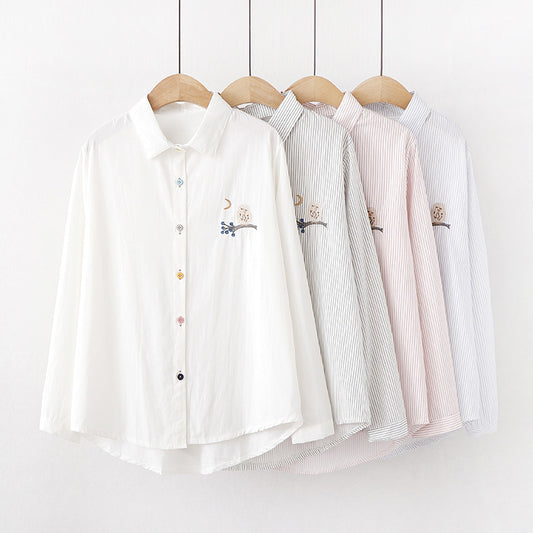 Embroidered Sweet And Versatile White Striped Long-sleeved Jersey