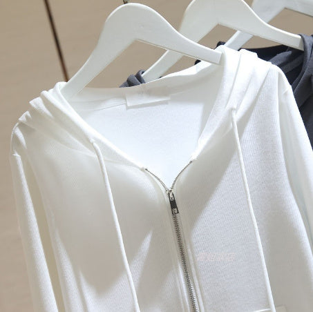 Casual Solid Color Hooded Short Jacket Y2K Fashion Sports Sweatshirt Long Sleeve Zip Up Cardigan Hoodies Women's Clothing