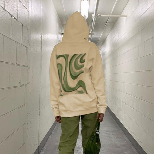 European And American New Women's Irregular Ripple Printed Hooded Sweater
