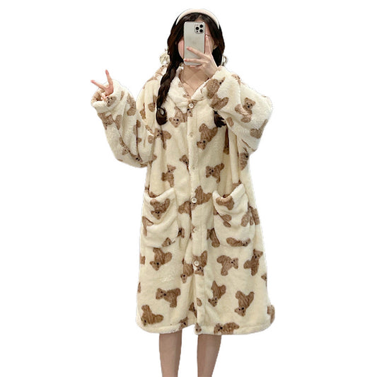 Cute Bear One-Piece Robe – Cozy Loungewear for Women