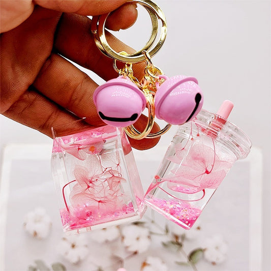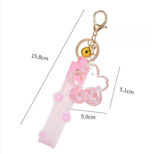Cartoon Quicksand Cherry Blossom Keychain Acrylic Transparent Flower Oil Drift Bottle Bag Pedants Hangings