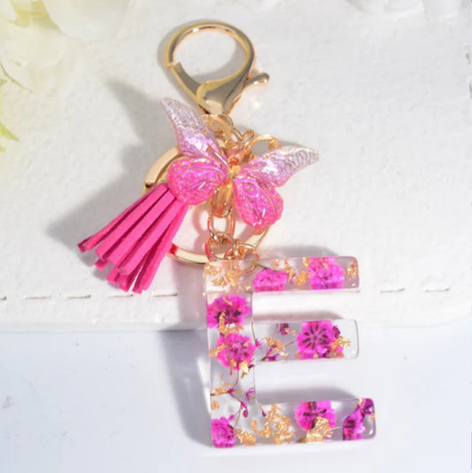 Rose Red Dried Flower Letter Tassel Butterfly Keychain