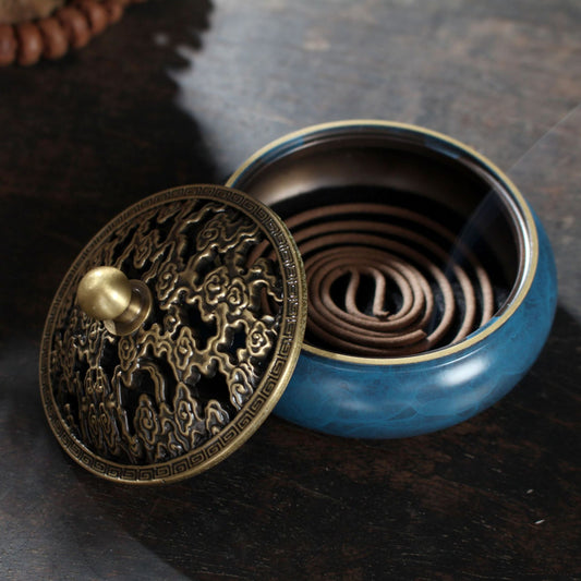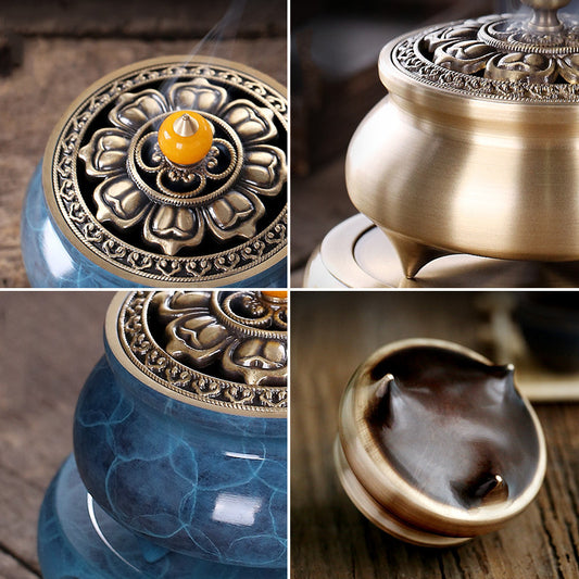 Pure Copper Burnished Blue Flat Chassis Incense Burner