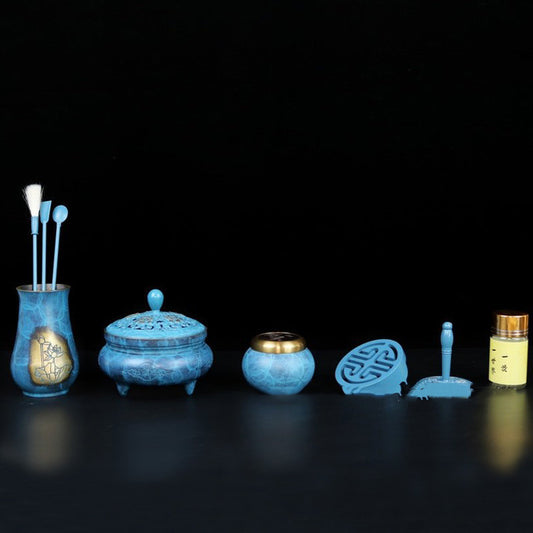 Burning Blue Pure Copper Professional Incense Utensils Fan Window Auspicious Clouds Set