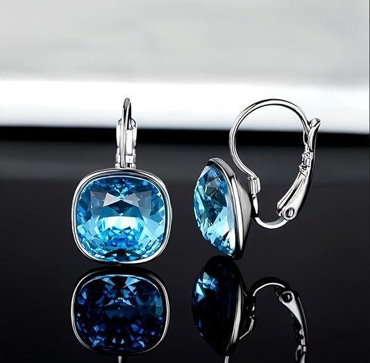 18K White Gold Crystal Plated Hypoallergenic Pendant Earrings For Women's Jewelry