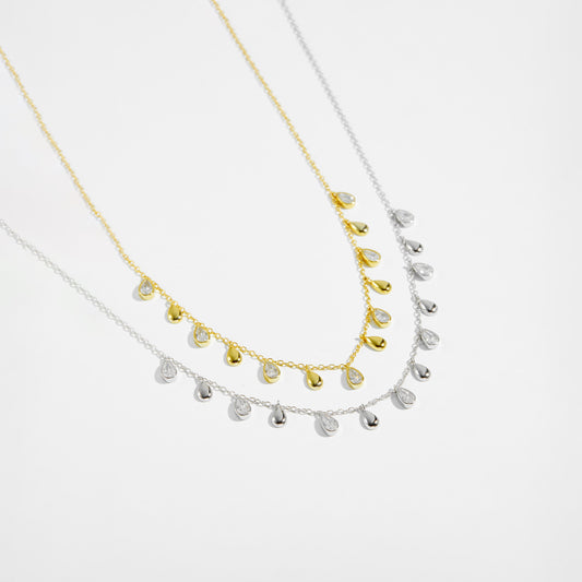 S925 Sterling Silver Pear-shaped Zircon Hanging Scarf Long Necklace