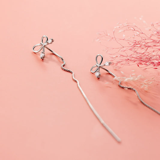 S925 Silver Bow Hanging Earrings Korean Style Lady Temperament