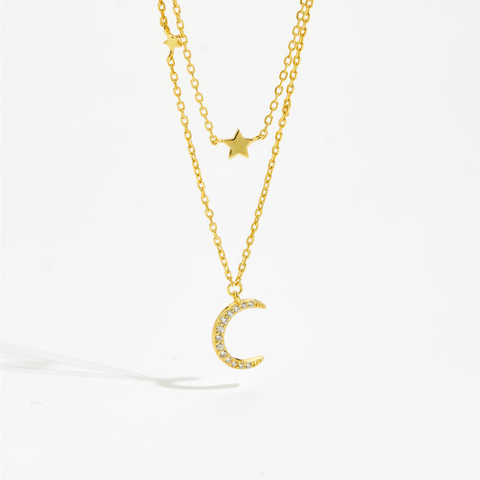 S925 Silver Crescent Moon Necklace Layered Necklace