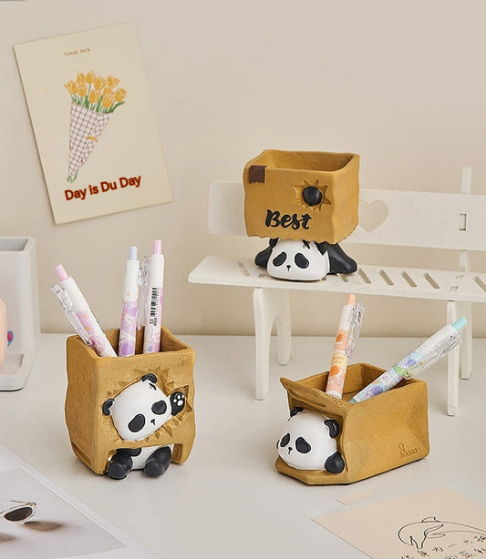 Cute Panda Pen Holder Creative Office Desk Ornaments Decoration Supplies Storage Box