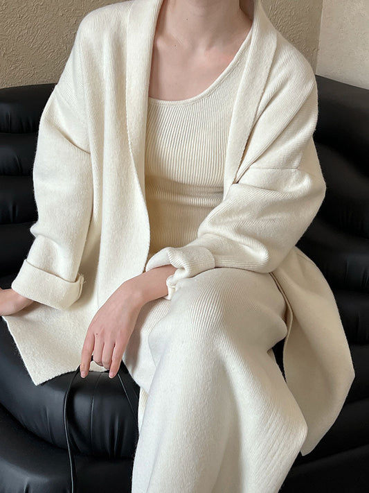 French Simplicity Cardigan Vest Wide Leg Pants Three-piece Set