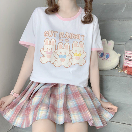 Printed Macaron Rabbit Baby T-shirt Women Pure Cotton Short-sleeved Bottoming Shirt Top