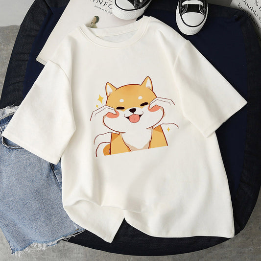 Fashion Simple Cartoon Cat Pinch Face Funny Print Pattern Top
