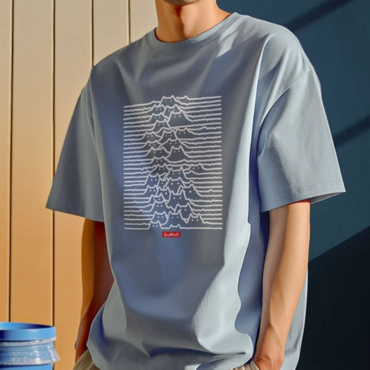 Cartoon Pure Cotton Trendy Summer Travel Mountain Cat Line Short Sleeve