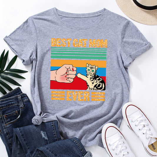 European And American Women's Clothing Creative Kitten Print Loose Round Neck Short Sleeve